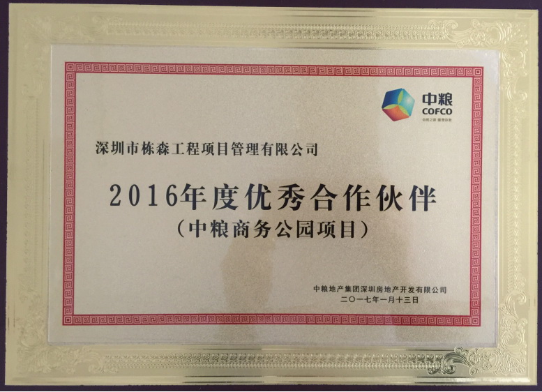 中糧地產(chǎn)集團深圳房地產(chǎn)開發(fā)有限公司2016年度優(yōu)秀合作伙伴