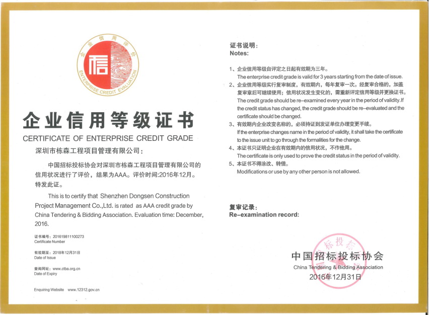 深圳市棟森工程項目管理有限公司本著"實在做事、厚道做人、感恩社會"的經(jīng)營理念,力求通過誠信為基石,保持公司健康的可持續(xù)性發(fā)展。